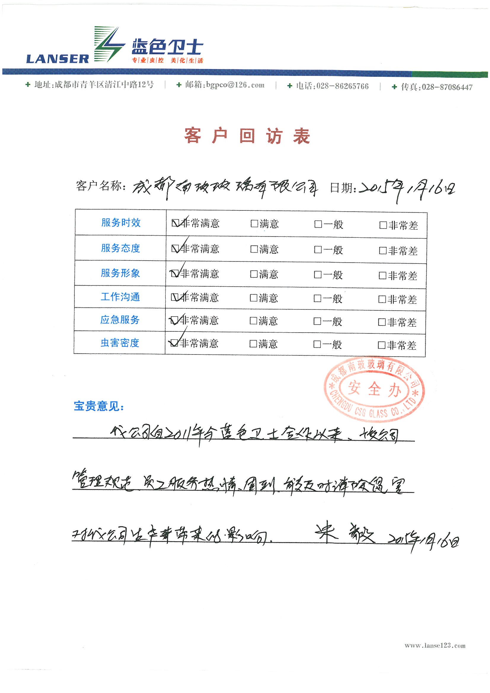 南玻玻璃對我公司服務質(zhì)量的評價: