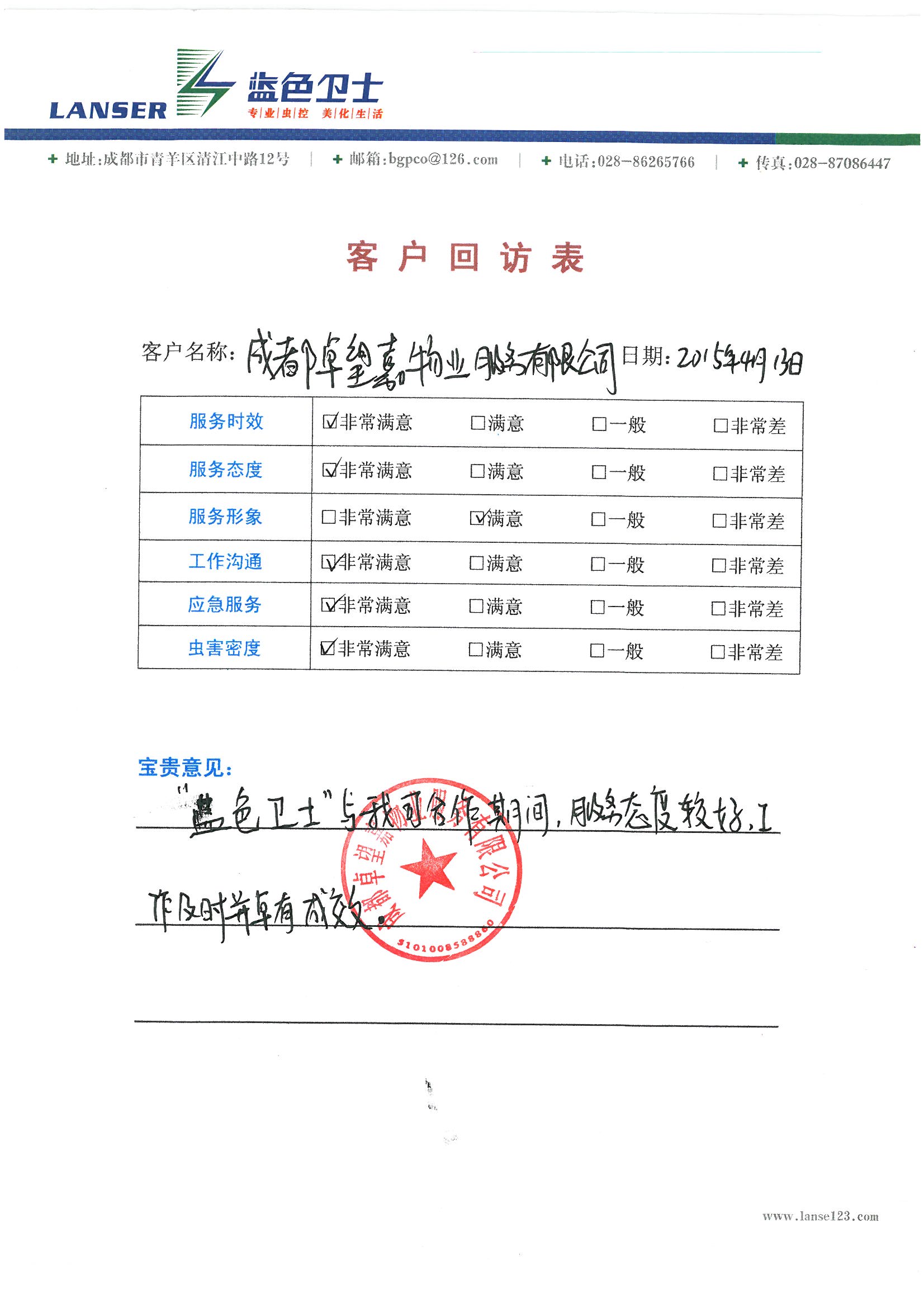 藍色衛(wèi)士與我司合作期間,服務(wù)態(tài)度較好,工作及時并卓有成效!