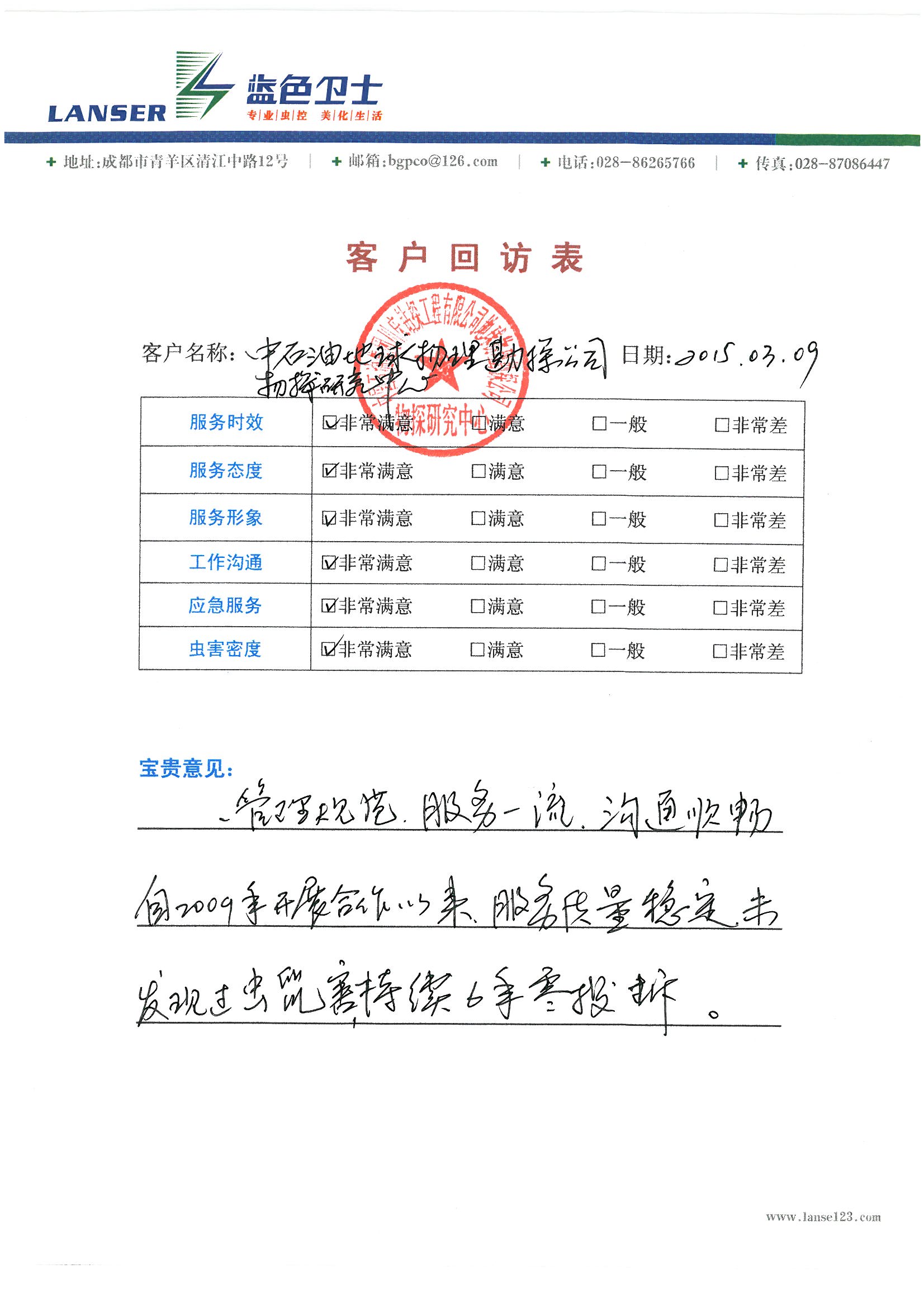 管理規(guī)范、服務一流、溝通順暢,自2009年開展服務合作以來質量穩(wěn)定,未發(fā)現(xiàn)過鼠蟲害,持續(xù)6年零投訴!